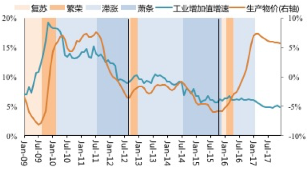 仔細(xì)回顧,本輪庫(kù)存周期從2015年年末即已展開(kāi)。在此之前,在上一輪庫(kù)存周期末期,上游行業(yè)巨大的產(chǎn)能過(guò)剩引發(fā)嚴(yán)厲的減庫(kù)存運(yùn)動(dòng),到2015年末,PPI負(fù)增長(zhǎng)達(dá)到-5.9%,實(shí)體經(jīng)濟(jì)承受的實(shí)際利率(對(duì)工業(yè)企業(yè)而言體現(xiàn)為融資成本與PPI之差)高企,壓力巨大。進(jìn)入2016年之后,以發(fā)改委為源頭的控產(chǎn)量式“供應(yīng)側(cè)改革”推出,例如煤炭生產(chǎn)時(shí)間從336天下調(diào)到270天,在過(guò)剩產(chǎn)能未受觸碰的條件下,產(chǎn)量受政策指揮而下滑。類(lèi)似政策在其他資源產(chǎn)業(yè)中也以不同的方式呈現(xiàn)出來(lái),其后果,是引發(fā)了資源品出廠價(jià)格的大幅飆升。之前的長(zhǎng)期負(fù)PPI,導(dǎo)致上游行業(yè)供應(yīng)鏈處于緊平衡狀態(tài),一旦價(jià)格上行,鏈條各個(gè)環(huán)節(jié)的補(bǔ)庫(kù)行為迅速打破這一平衡,導(dǎo)致價(jià)格-庫(kù)存的螺旋般上揚(yáng)。